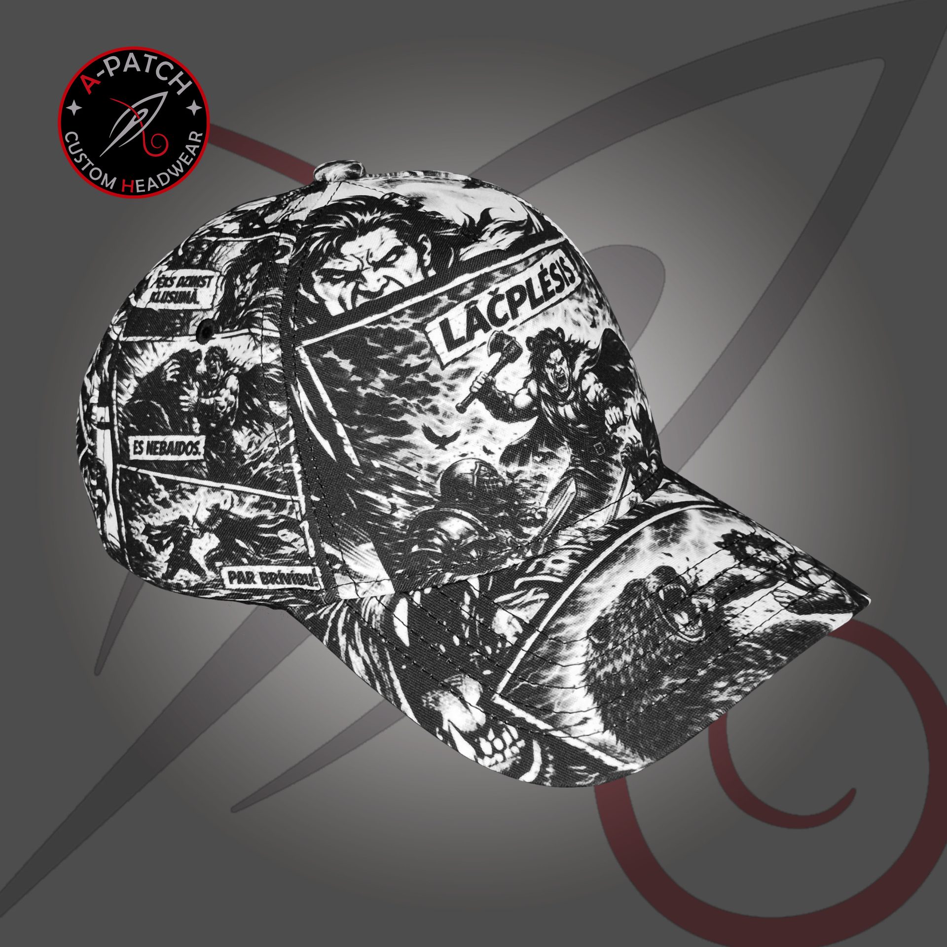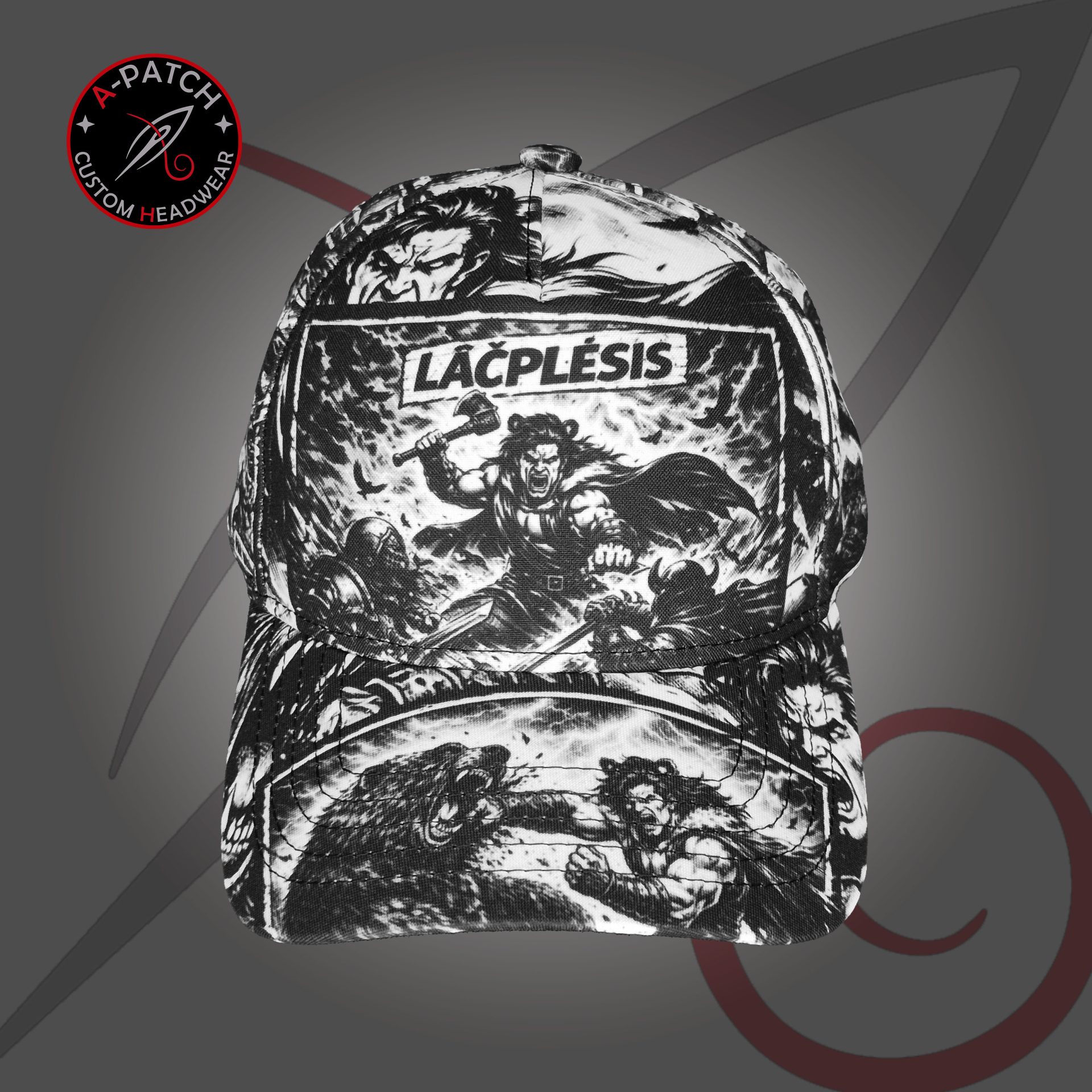 The Super Lāčplēsis cap is a powerful fusion of Latvian epic heritage and modern comic-book art.